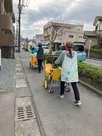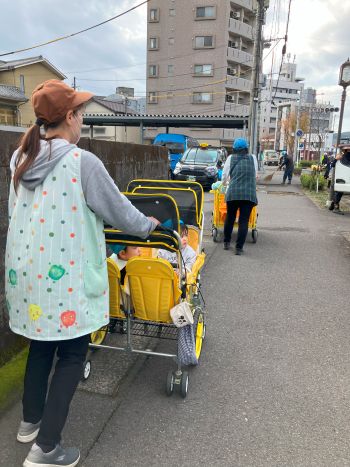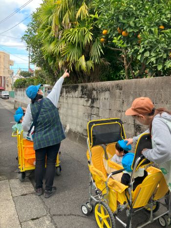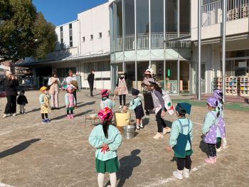| 2025/12/19 こすもす組 園外散歩 園外散歩で園の周りを散歩しました。みかんの木や車を沢山見ました。また、工事中の近くを通り、ショベルカーがコンクリートを持ち上げて、トラックに積んでいる作業を見ることができて、子ども達はとても喜んでいました。 |