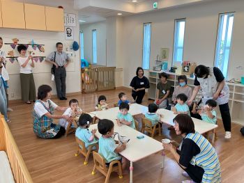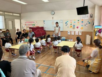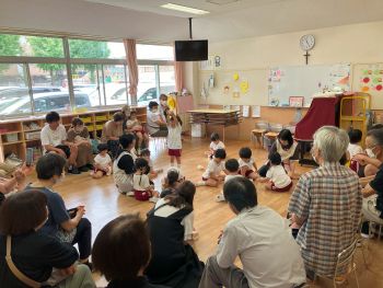 | 2025/09/16 祖父母参観 祖父母参観がありました。おじいちゃん、おばあちゃんに久しぶりに会う子どももおり、嬉しそうな表情が見られました。各クラス、製作をしたり、作ったものでゲーム遊びをしたりして、活動を楽しんでいる様子でした。 |