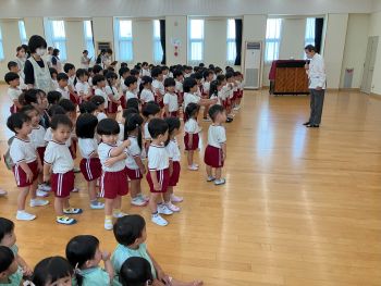 | 2025/09/16 避難訓練 今日は、原発事故、津波を想定した避難訓練がありました。保育者の話を聞き、落ち着いて避難に取り組む姿が見られました。原発事故や津波にはどんな危険があるのか、またどこに避難をすれば良いかについて、一緒に話をしながら理解を深める子ども達でした。 |