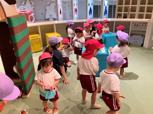 | 2025/09/17 年少組 園外保育 今日は、園外保育で科学館へ出掛けました。地震や風を体験するコーナーでは、普段味わうことのない経験に少し緊張しながらも友達と一緒に参加する姿がありました。また、様々な映像や展示品を見て盛り上がっていた子ども達でした。おにぎりは、園に戻って各クラスで美味しくいただきました。 |