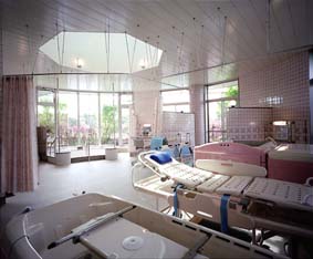 入所者に対して、自分の居場所を確保できるような家庭的な雰囲気を取り入れた計画としました。浴室拡張工事では、入所者がくつろぎながら入浴できる明るく、安全な計画としました。