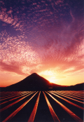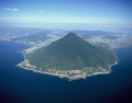 開聞岳は,市の南西部に位置する標高924mの活火山。複数回の噴火で溶岩や火山砕屑物などが積み重なって形成された円錐状の成層火山の頂上部に粘性の強いマグマが盛り上がりできた溶岩円頂丘がのっている。円錐形の山体が海から空へと向かう様はとても美しい。そのシンメトリーで均整のとれた姿から「薩摩富士」とも称され,日本百名山の一つに数えられている。