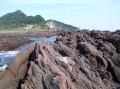 連続した溶岩や角礫状の岩石でできた延長約2kmの岬。海に突き出した奇岩の突端付近では,溶岩が流れ出た模様がみてとれる。付近の赤水岳をはじめとする山々はすべて火山噴出物でできた山体だ。長崎鼻は,約10万年前に噴火した阿多カルデラ以前の火山の名残と考えられている。