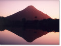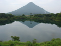 直径140m,深さ約14m。約5,700年前の噴火でできた鏡池は,マール地形の典型例として知られる。マールとは,爆発的な噴火によって生じた火口で円形またはそれに近い輪郭をもち,周縁に顕著な堆積物の丘をもたない火山地形。マールの底は平坦なことが多く,鏡池のようにしばしば水で満たされている。鏡池には,こんな伝説がある。 「その昔,誤って池に落ち上がってこない小坊主を助けるため,和尚が霊力で池の水を北の窪地に移すと,底には小坊主を取り囲んだ河童たちがいた。和尚は河童を一喝,焼き印を捺し二度といたずらをしないよう誓わせ,新しい池に住まわせたという。」 伝説によれば,小坊主が落ちたのが水無池,そして河童の移った先がこの鏡池だ。