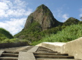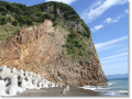竹山は,マグマが地表に噴出する1歩手前で急に冷えて固結した火成岩の岩体だ。後に山体が侵食され,急峻な岩体が現れた。およそ5〜6万年前に形成されたと推定されている。周辺の台地からほぼ垂直に突き出した東西2つの山は標高約200m。天和3年(1684),この奇岩2体を神体に竹山神社が創建された。祭神は,「武」の神,須佐之男命。第2次世界大戦中は,多くの人々が神社を参拝したという。 岩の表面に見える柱状の割れ目は,地下を上昇してきたマグマが冷えていく過程でできたもの。中には,その割れ目が放射状に走るものもある。南側斜面 では,節理にそって岩石が崩落し,一抱えほどもある四角い岩がごろごろと転がっている。浜辺では,長い年月の間に波で浸食され,丸い石に姿を変えた人頭大の安山岩を観察できる。