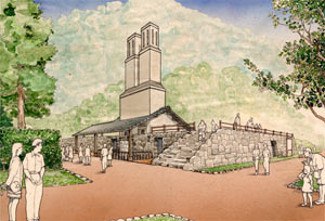 斉彬が造らせた集成館(工場群の総称)は、 薩英戦争でほとんどが焼失してしまいました。 その中で一つだけ残っているものがあります。 それが反射炉です。 といっても、 本体は焼けてしまったのですが、 見上げるほどの大きさの土台の石組みが残っているのです。 数年前、島津興業ではこの場所の発掘調査を依頼し、 その結果、ここにはかなりしっかりした造りの 反射炉が あったことがわかりました。 文献などから推測すれば、 レンガを積んだ煙突だけで20メートルもの高さになるのだそうです。 20メートルというと7,8階建てのビルと同じくらいの高さになります。 昔は背の高い建物などたくさんはありませんでしたので、 当時の人たちはこの反射炉を見てどう思ったのでしょうか。 反射炉とは、大砲の砲身の部分を造る施設です。 原料を直接燃やすのではなく、耐火煉瓦に反射させた熱でとかし、 とかした原料を型に流し込むというものです。 燃料を燃やした熱を直接当てると、不純物がまざって鉄がもろくなってしまうことがあるため、 このような方法がとられました。 今年は集成館事業が始まってから150年目になります。 150年前に鹿児島では何がおこっていたのか?