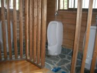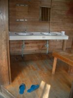 - トイレ:一般用和式トイレ、中央板張りより1段下がる