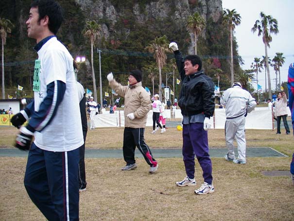 マラソン前のエアロビ!柔軟体操を十分しましょう!でもちょっとまだ恥ずかしい‥