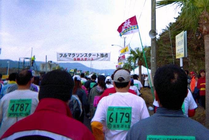 スタートです。しかし足が!!ここの段階で今回は走らず1km/10分ペースで歩くことを決心