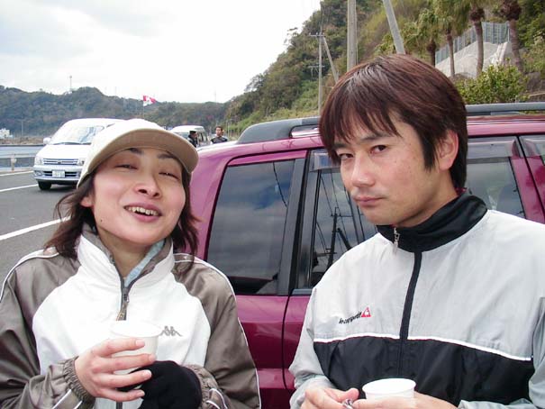 35キロ地点の山川駅の側です!女性トップとそのボディガード?ペースメーカー?どっち?