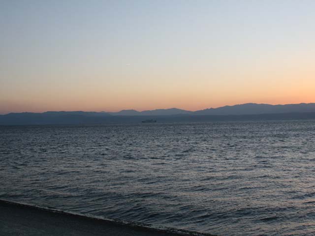 すっかり夜が明けてきました。朝やけに光る飛行機雲が綺麗なのですが、残念ながら写真では確認できない。
