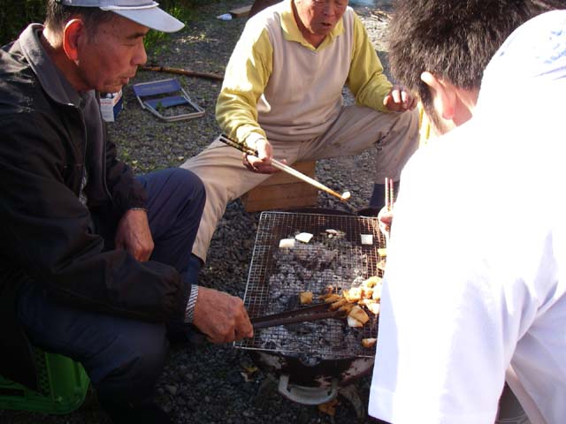 25キロ過ぎると私設フードステーションがたくさん出ている!餅を焼いているところやぜんざいをくれるところがある。