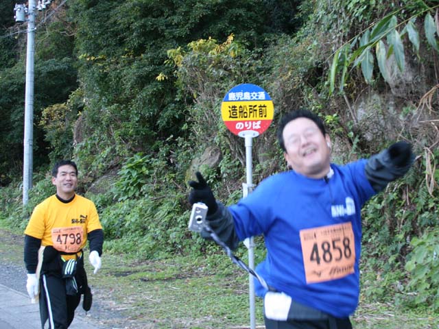 サポーターの車がやってきたので、おどけで見せてしまった。お調子者!って感じの写真になってしまった