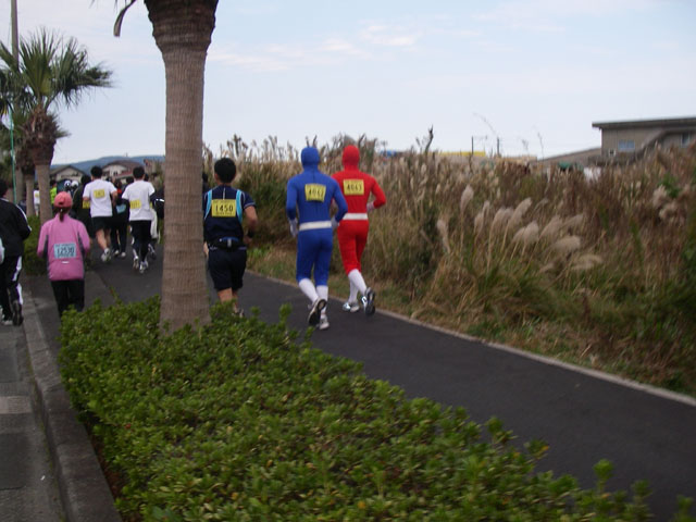 赤レンジャー&青レンジャー発見!ゴールまでこの格好で走るのはきっと大変だろうな〜暑そう!!