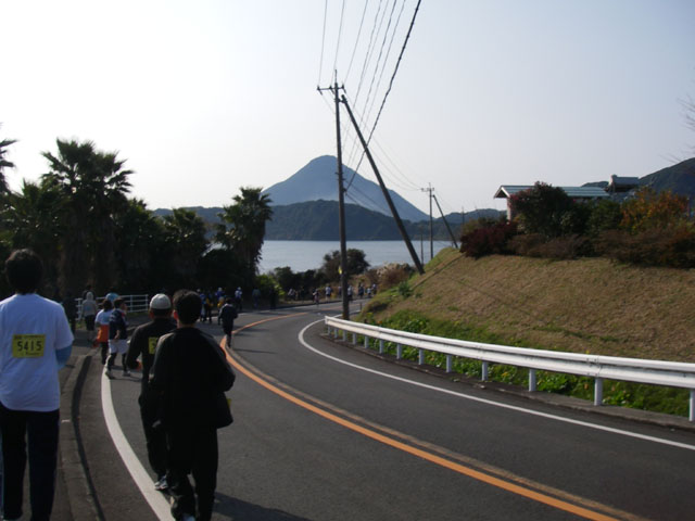 やっと池田湖が見えてきました!でもこの下り坂は案外膝に負担がかかります!無理をしてはいけません!!