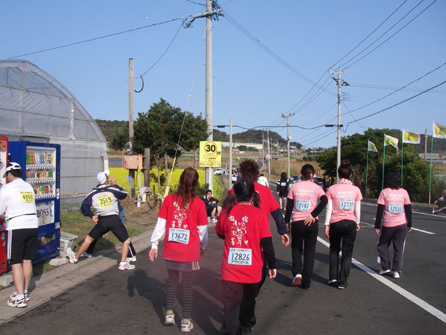 30キロ地点!46分オーバー!この後、自動販売機の横で座って休憩してしまった!疲れましたね〜