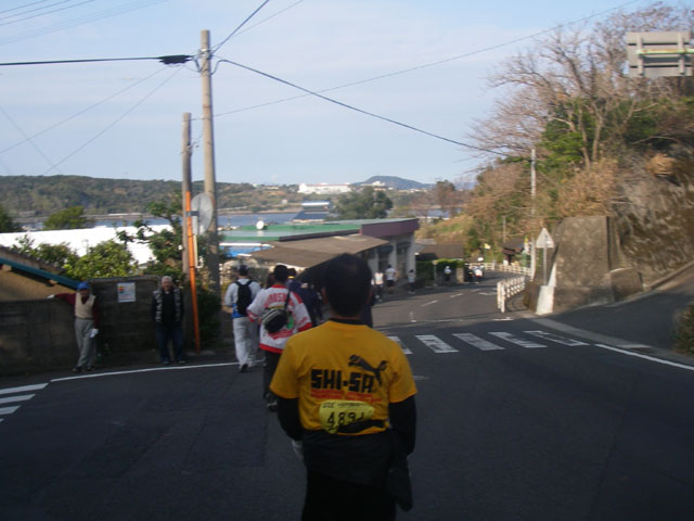 山川港が見えてきました!遠くに見える白い建物の下まで歩かないといけない!疲れが倍増!