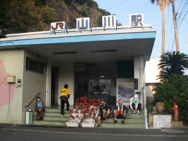 山川駅に到着!この前の山川港で待っていたサポーターのところで休憩!でも写真も撮っていない!残念!!