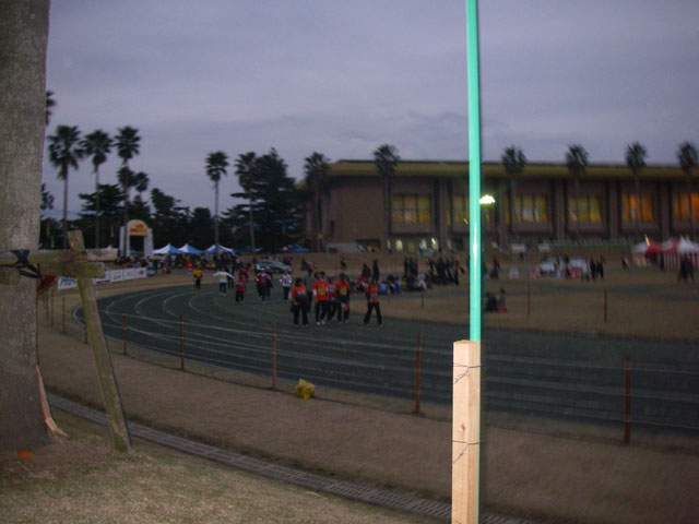 陸上競技場の横に来ました!ゴール寸前の人たちが見える!ん??あの黄色いTシャツは!!!