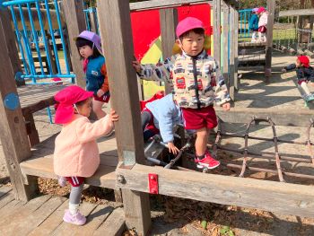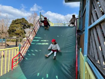 | 2026/02/12 年少組 園外保育 今日は、園外保育で健康の森公園に出かけました。大きな滑り台を何回も滑ったり、友達と遊びたい遊具を見つけて、色々な遊具に挑戦したりする姿がありました。昼食は、みんなでシートを広げて会話を楽しみながらおにぎりをおいしくいただきました。 |